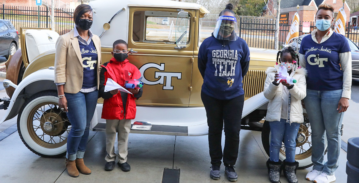 One of the first engagement activities, held February 5, introduced balsa wood glider kits to the Academy’s fourth grade class. Sharpe and the Academy’s staff welcomed the aerospace engineering school staff and the Ramblin’ Wreck to their campus. Georgia Tech provided project kits that included materials and supplies for the glider project, a specially-designed project workbook, and a set of supplementary NASA activities for students who can’t get enough. For students that were home for virtual learning, the gliders were delivered door-to-door across the elementary school district.
