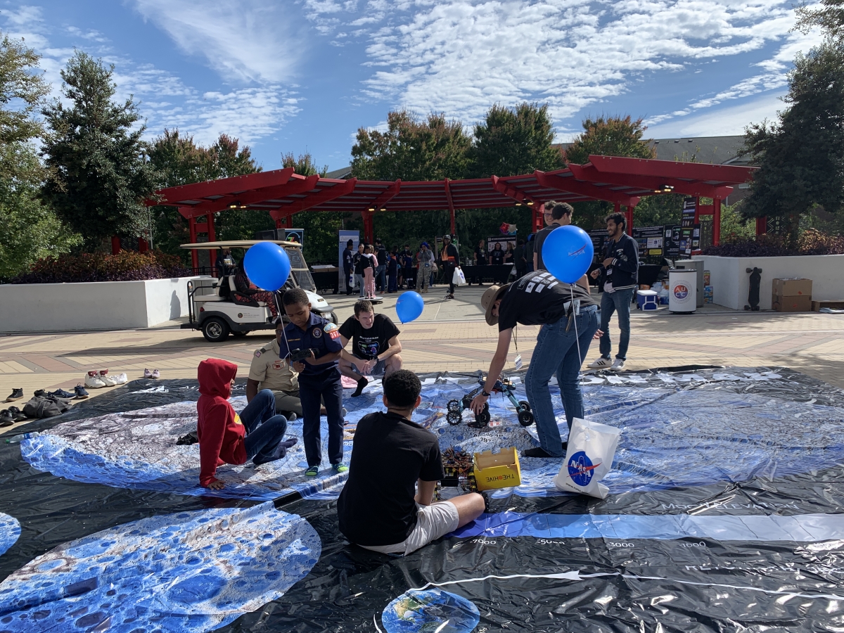 Georgia Tech students served at hands-on booths bringing their science and engineering knowledge and most importantly an eagerness to teach budding young minds. They also worked the registration tables handing out raffle tickets, balloons, and NASA goodie bags, as well as setup and breakdown. Many of the booths were interactive and demonstrated everything from making spacecraft orbiters to understanding how black holes and gravity work in space. Participants asked questions and interacted with volunteers.