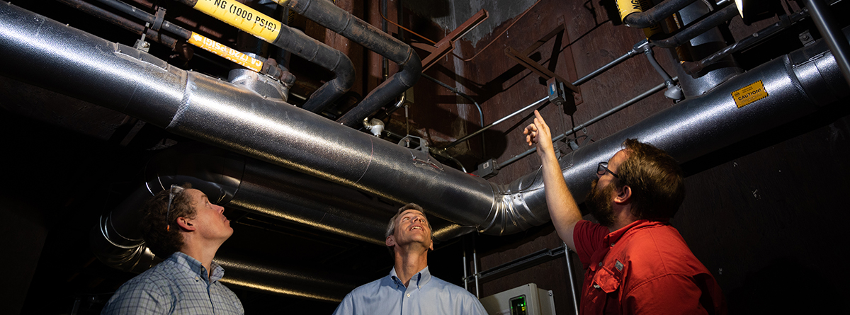 Always looking up. Combustion team wins best paper, from left, Benjamin Emerson, Timothy Lieuwen, and Kristopher Manion